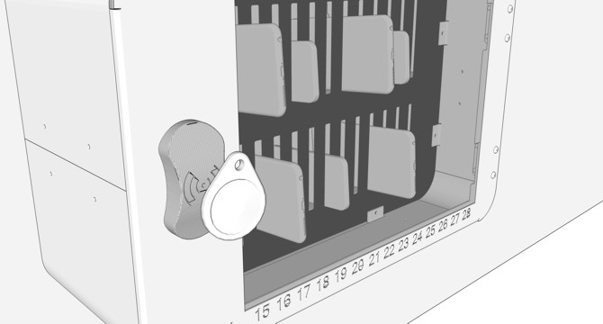 Handylocker provides the optimal solution for a class free from mobile phones: the innovative handy safe enables the convenient and neat storage categorisation (quantified subjects) of up to 40 mobile phones in a safe and stylish environment.